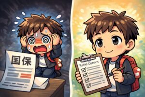 同じように国保で使える“減免”の具体的な流れも押さえておきたいなら。→ 👉 フリーランスの天敵「国保」が重い!払えない時に整理すべき減免の選択肢・税金に追われて頭が真っ白な僕らができること。